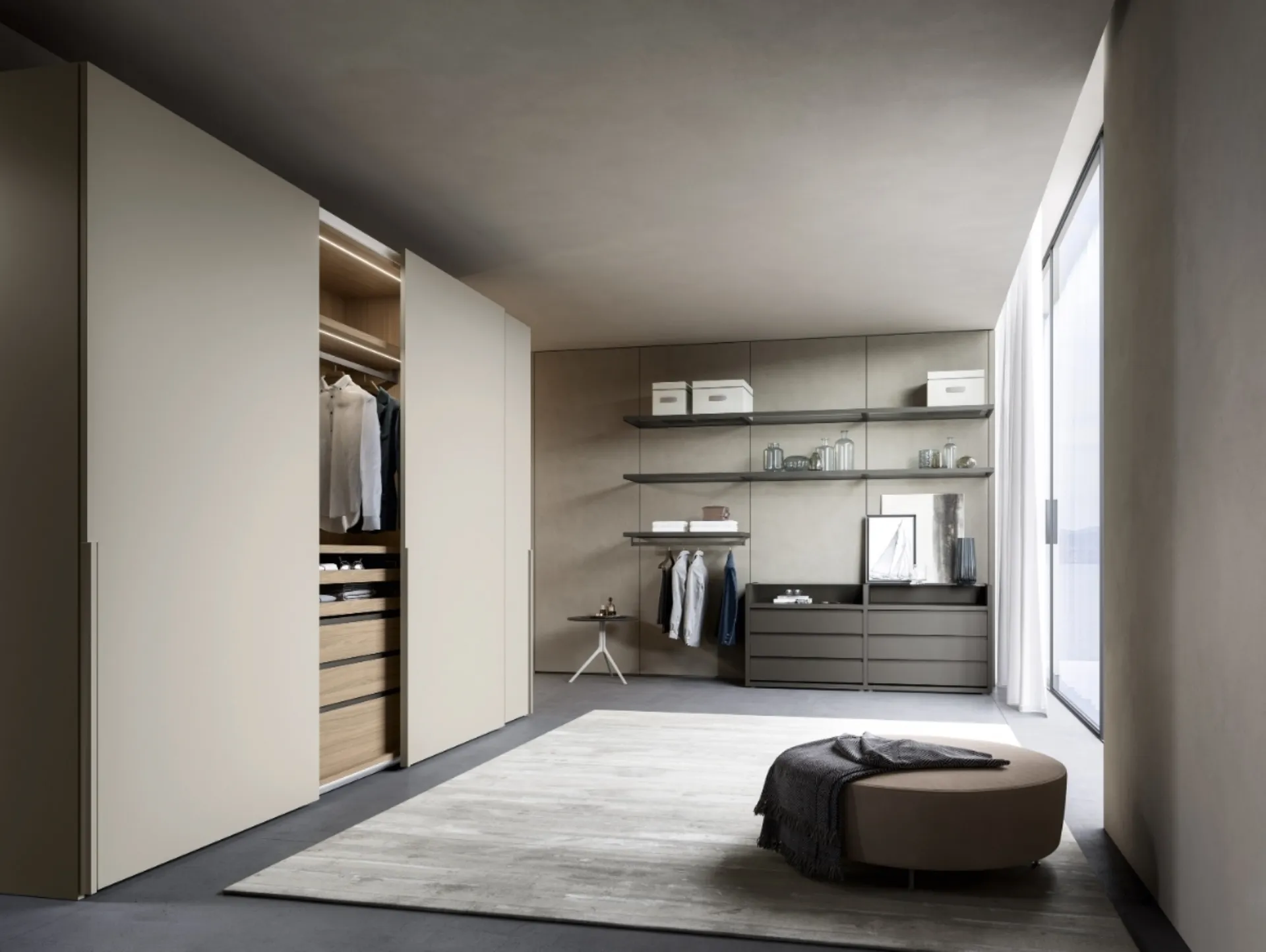 Ti presentiamo l'armadio Tratto Opaco Corda in laccato opaco di Sangiacomo! Una ricca gamma di armadi a muro con ante scorrevoli.