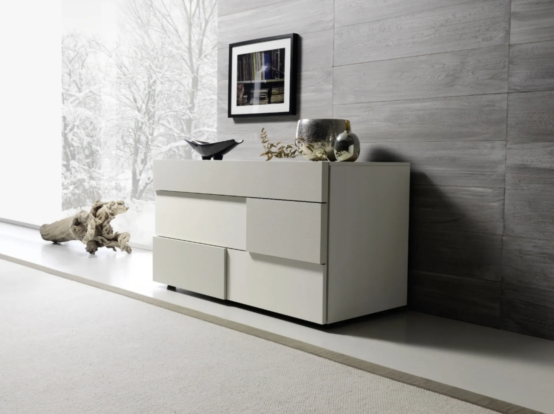 Una ricca gamma di cassettiere Sangiacomo: i comodini moderni in laccato opaco, come Insieme Comò, sono tra le proposte più belle.