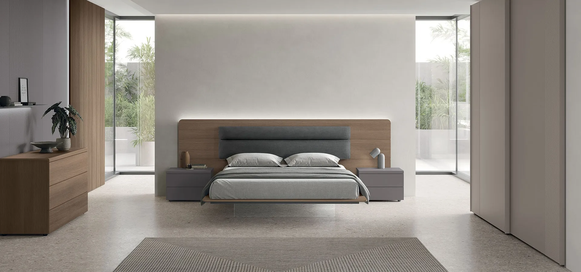 Se cerchi letti matrimoniali con testiera, eccoti il modello Leonardo in melaminico per completare la zona notte.
