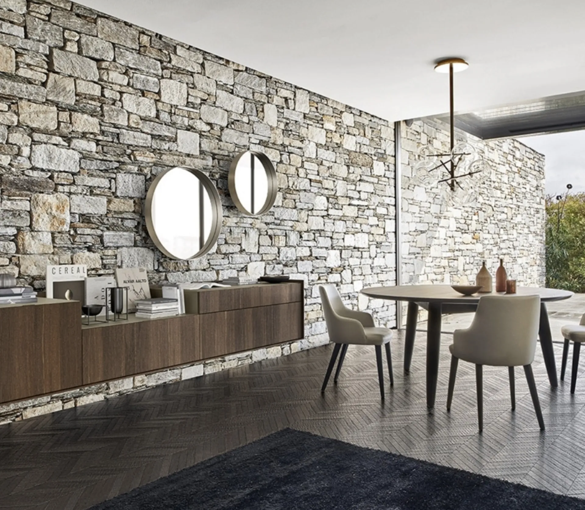 Pensili in legno della firma Sangiacomo: clicca e scopri il modello Cabaret One 01 tra le più belle soluzioni per il soggiorno.